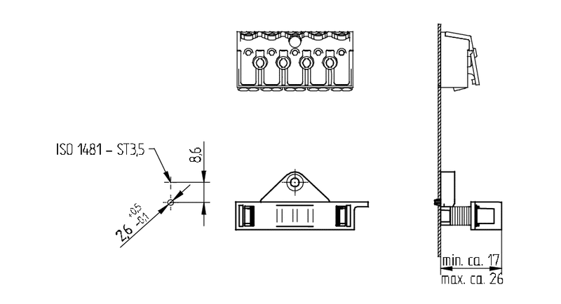 | mounting method 1: | Screw mount with moulded anti-rotation lug |