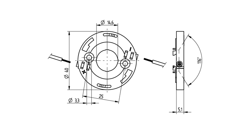 製品情報 "COB Connector Ø40 LED array 15.8x15.8"