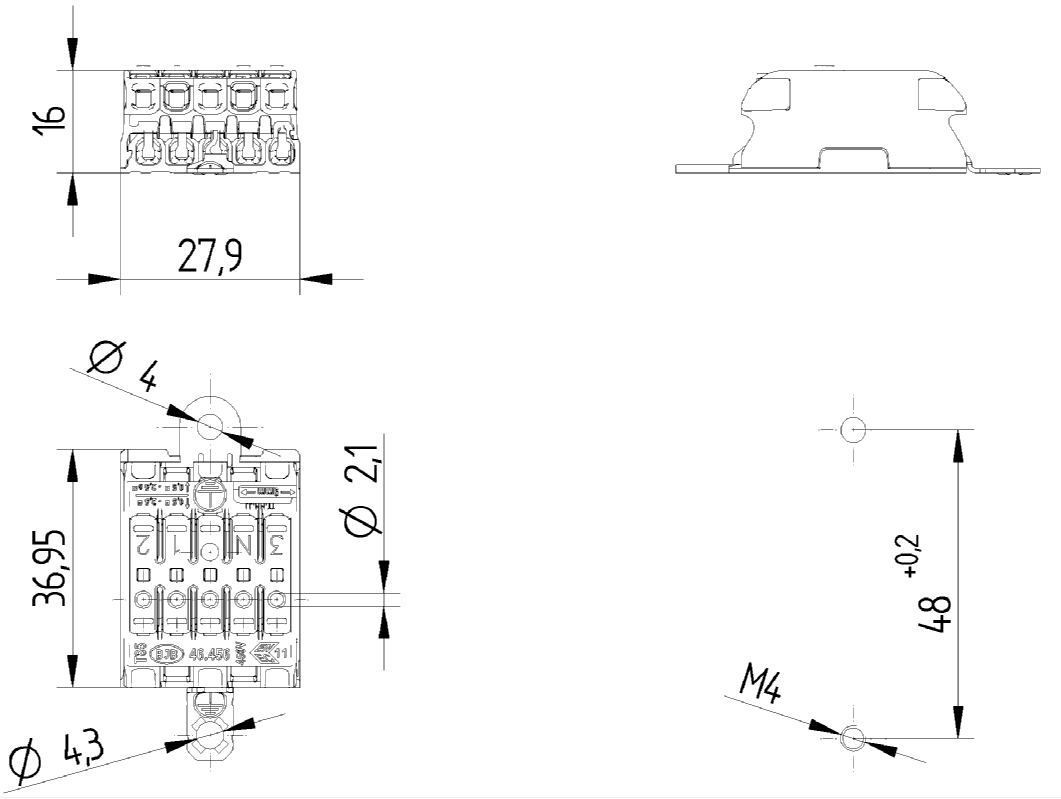 | Ausführung: | marking 3 N ⏚ 1 2 and earthing bracket |