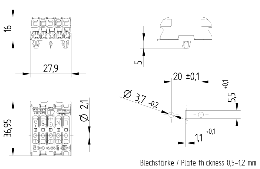 | Ausführung: | marking L N ⏚ DA+ DA- and Rapid Earth Contact |