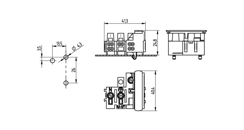 | Screw terminals: | ø 3.4 |