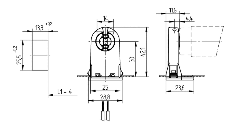 製品情報 "G13 Fluorescent Push-Through Lampholder"