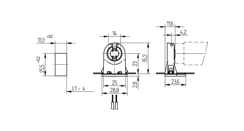 製品情報 "G13 Fluorescent Push-Through Lampholders"