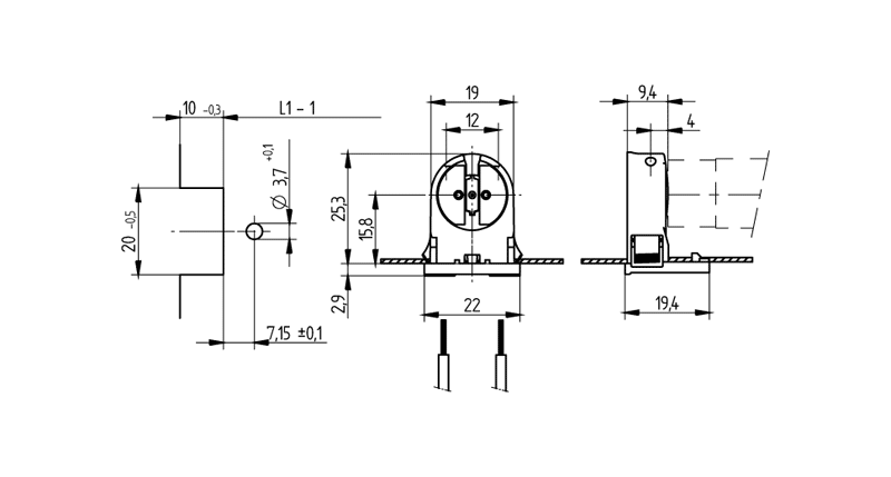 製品情報 "G5 (T5): Fluorescent Push-Through Lampholders"