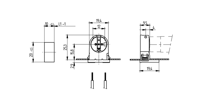製品情報 "G5 (T5): Fluorescent Push-Through Lampholders"