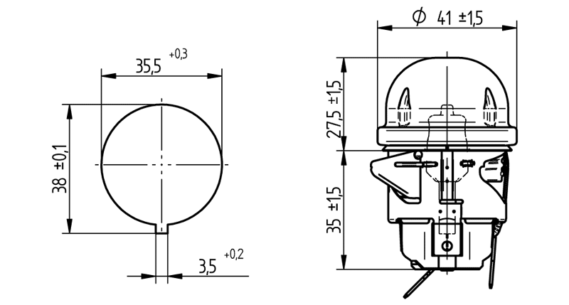 | Material: | Lens: soda-lime glass 350° CSleeve: CrNiLampholder: Steatite |
