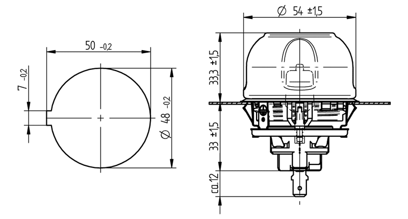 | Material: | Lens: soda-lime glass 350° C, snap in fixingFixing ring: CrNi / nickel plated steelLampholder: Steatite |