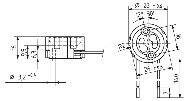 | Wires: | Cu. nickel, 0.75 mm², Insulation: PTFE (max. 250° C), with ferrule, Free cable length: 140 mm |
