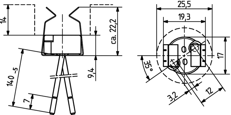 | Wires: | Cu, nickel plated 1.0 mm², with ferrule, Insulation PTFE (max. 250° C), Lead length: 140 mm |