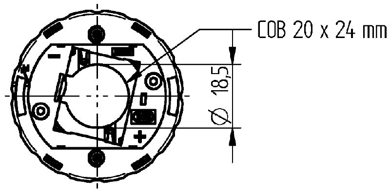 製品情報 "lampmodule top GH36d, D 50mm, with glascover, 2 optic interfaces analogous BJB 40 & 50 mm, COB 20 x 24, snap-in prefixing of COB"