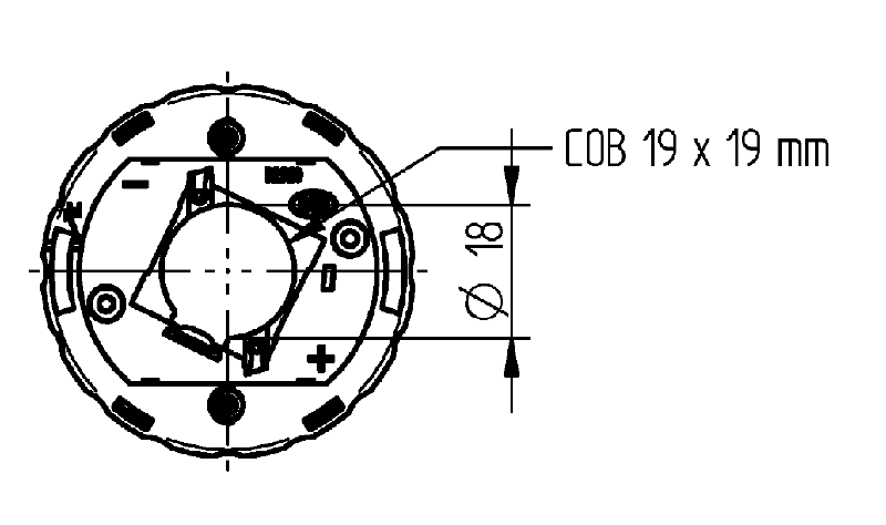 lampmodule top GH36d, D 50mm, without glascover, 2 optic interfaces analogous BJB 40 & 50 mm, COB 19 x 19, snap-in prefixing of COB