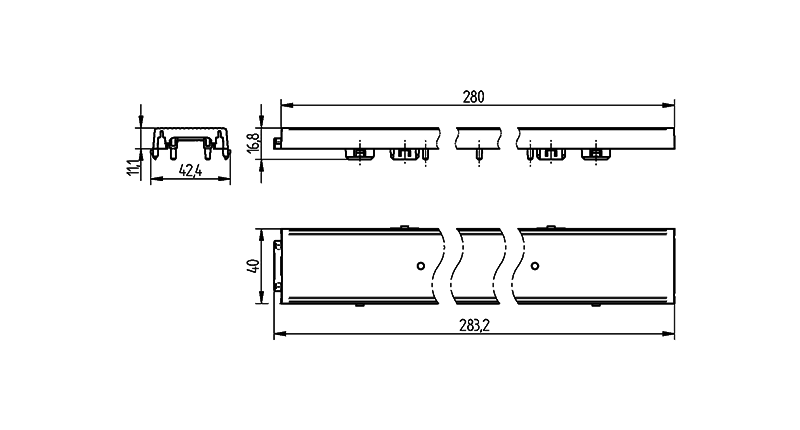 Suitable for different lengths of LED modules from 280 mm (1ft) to 560 mm (2ft). Compatible with freely available LED modules with width of 20 - 24 mm and module thickness of 1.6 mm