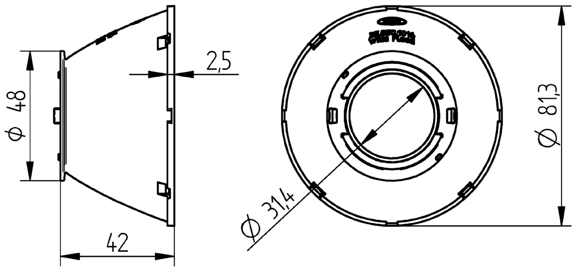 Reflector is optimized for use with connectors 47.319.2013 / 2021 / 2025 / 2026 / 2345 and 47.360.5010.50 with Ø 50 mm.