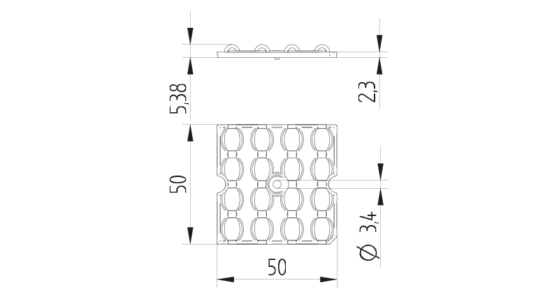 | Suitable for: | Suitable for LED chips 3030, 2835 and LED modules with4x4 Pitch according to Zhaga Book 15 |