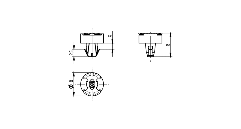 | mounting method 1: | Push in fixing: for hole pattern ø 4.2 mm |