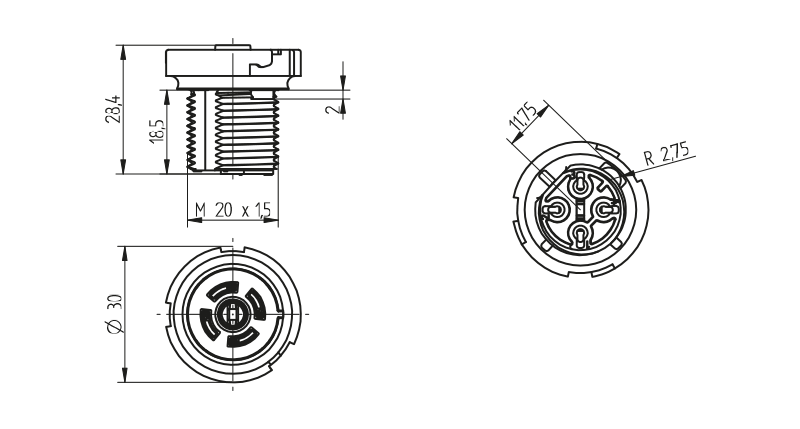 | Other: | Receptacle Zhaga Book 18 with attached flat seal for standardised metal sheet cut-out for communication and sensor units |