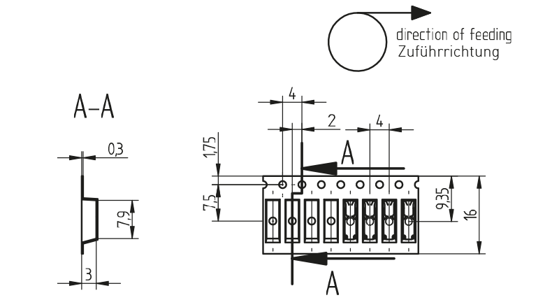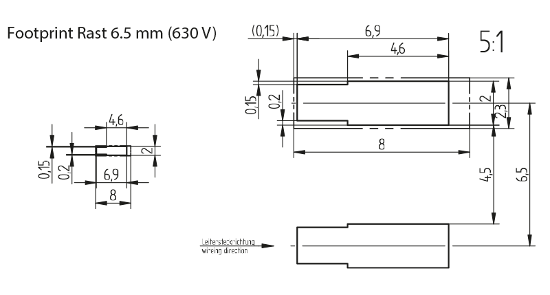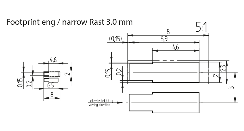 Mounting and wiring position: PCB top side