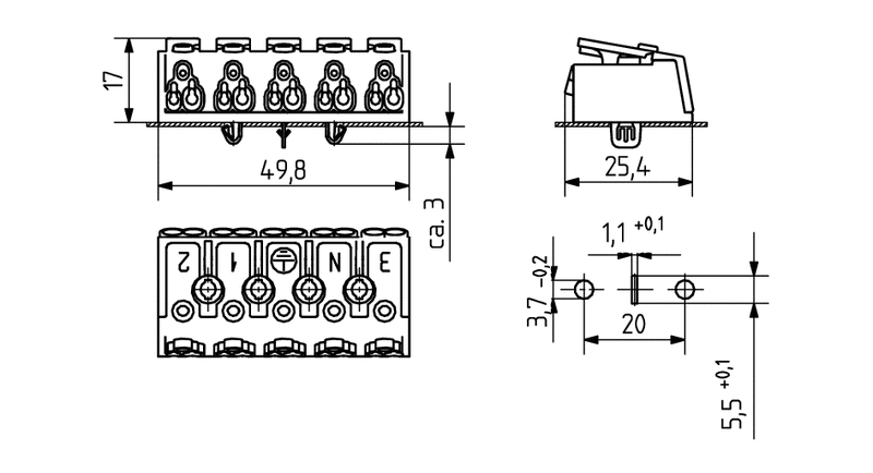- b) 1 x 0.5 - 2,5 mm², releasable