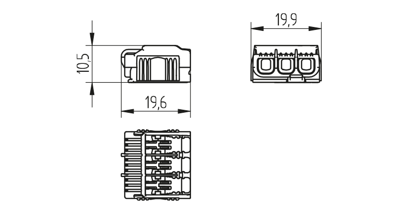 Universal wire connector 2. Gen., 3 numbers of connection, 1 potential, Contact opening function
